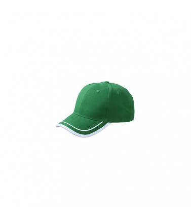 cappello a 6 pannelli spazzolato visiera con bordo e cordoncino in colore a contrasto , 6 fori di aerazione ricamati . pannello frontale laminato , fascetta tergisudore imbottita in satin. chiusura a velcro, cotone spazzolato, tessuto esterno: 100% cotone, ruvido, velcro,policromo, sandwich