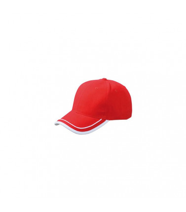 cappello a 6 pannelli spazzolato visiera con bordo e cordoncino in colore a contrasto , 6 fori di aerazione ricamati . pannello frontale laminato , fascetta tergisudore imbottita in satin. chiusura a velcro, cotone spazzolato, tessuto esterno: 100% cotone, ruvido, velcro,policromo, sandwich