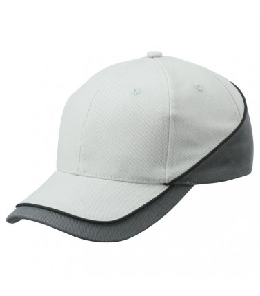 cappello 6 pannelli di altissima qualitã 6 fori di aerazione ricamati, ricchi inserti a contrasto e cordoncino attorno al cappello, pannello frontale laminato, fascetta tergisudore in satin . chiusura a clip con occhiello metallico, cotone molto pesante pettinato