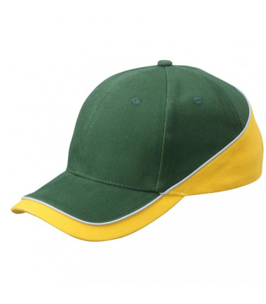 cappello 6 pannelli di altissima qualitã 6 fori di aerazione ricamati, ricchi inserti a contrasto e cordoncino attorno al cappello, pannello frontale laminato, fascetta tergisudore in satin . chiusura a clip con occhiello metallico, cotone molto pesante pettinato
