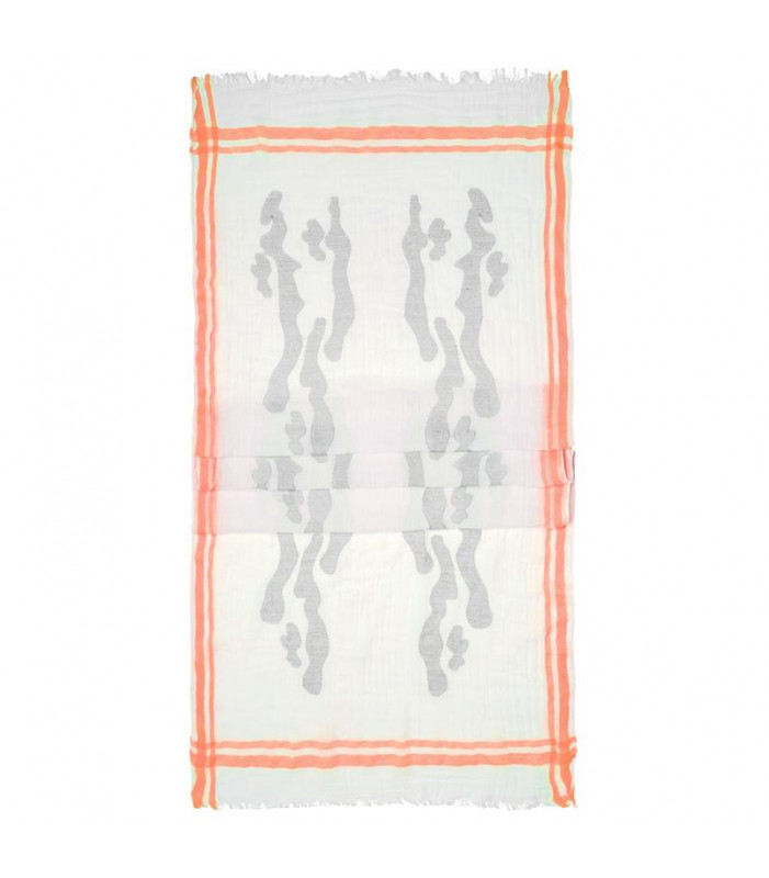 80% cotone, 20% poliestere. sciarpa dal tessuto morbido e piacevole da indossare, righe in colori a contrasto sulle estremitã , orli arrotolati sui bordi longitudinali, tessuto sfrangiato sulle estremitã . dimensioni: 180 x 63 cm.