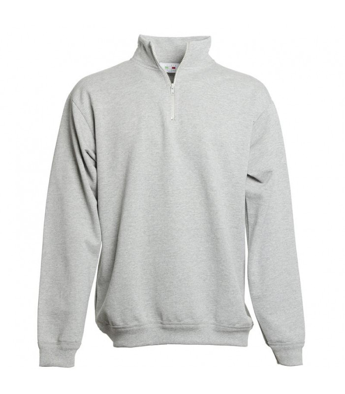 100% cotone. felpa con maniche set-in, zip â¼ in plastica con tiralampo in metallo, felpata internamente, struttura con cuciture laterali.