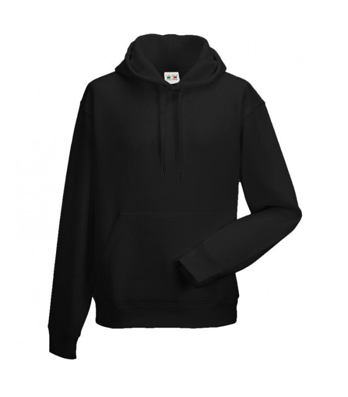 80% cotone, 20% poliestere. felpa con maniche set-in, unisex a tre strati, felpata internamente, cappuccio a doppio strato, grande tasca a marsupio, struttura com busto tubolare, fascia in vita e polsini in costina, tessuto pst.