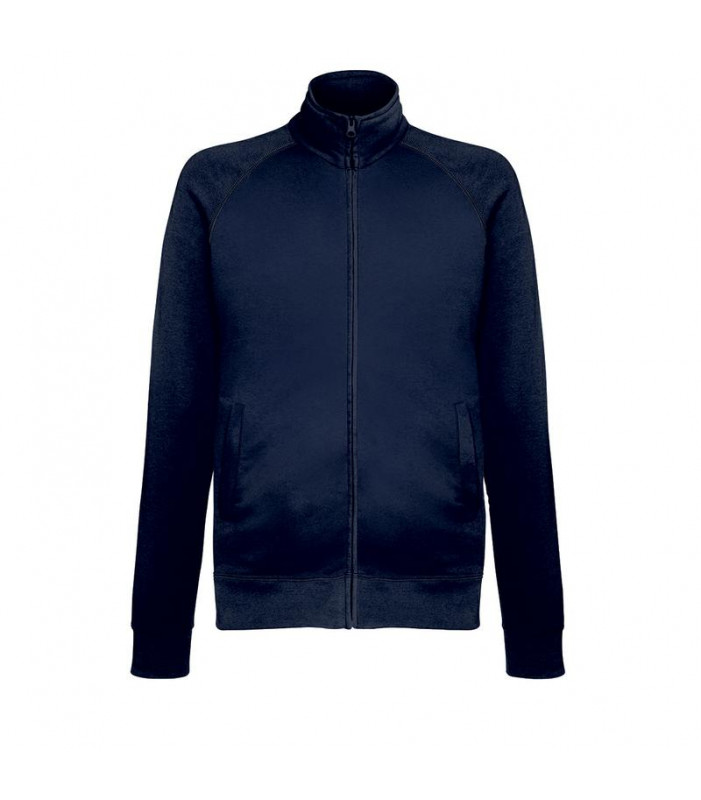 80% cotone pettinato, 20% poliestere. felpa con maniche raglan, felpata internamente, zip intera, tasca a marsupio, orlo inferiore e polsini in costina, struttura con busto tubolare.