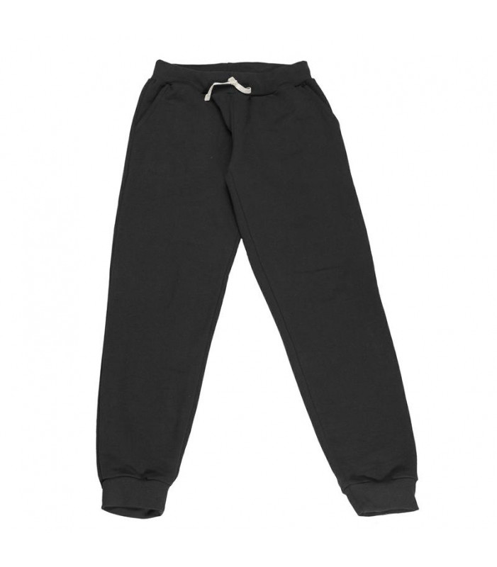 80% cotone, 20% poliestere. pantaloni con polsini alle caviglie, sgarzati, due tasche laterali, elastico in vita con cordoncino di colore contrastante.