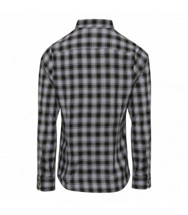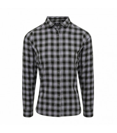 100% cotone. camicia donna a manica lunga con disegno a quadri in contrasto multi-colore. polsino con bottone semplice e pannello protettivo della manica, creato per rimboccarla e chiuderla con una linguetta abbottonabile sull'avambraccio. leggermente sfiancata ai lati.