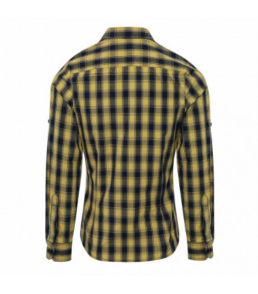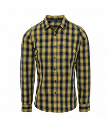 100% cotone. camicia donna a manica lunga con disegno a quadri in contrasto multi-colore. polsino con bottone semplice e pannello protettivo della manica, creato per rimboccarla e chiuderla con una linguetta abbottonabile sull'avambraccio. leggermente sfiancata ai lati.