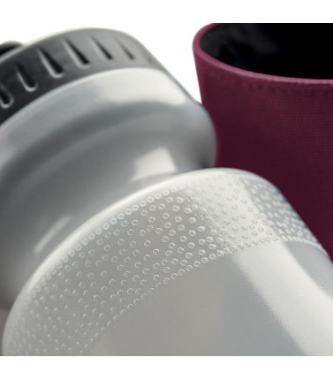 600d poliestere. porta borraccia e borraccia in plastica bpa-free inclusa, tappo estraibile morbido a vite, collo ergonomico che facilita la presa, apertura della bottiglia a collo largo per facilitare il riempimento e la pulizia, passante per cintura e m
