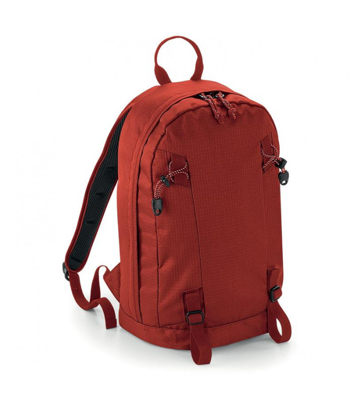 100% 600d rip-stop poliestere. zaino tecnico adatto per ogni genere di contesto outdoor, tasca interna con chiusura a zip, porta-bottiglie interno in rete, cinturino pettorale regolabile, tessuto waterproof, pannello posteriore imbottito e traspirante. dimensioni: 27x40x18 cm, capacitã : 15 litri, area di stampa: 10x27 cm.