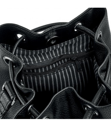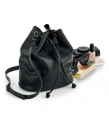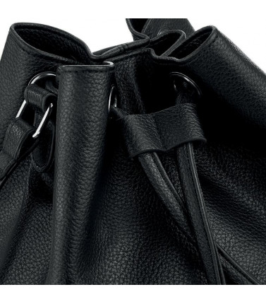 100% poliuretano nuhide.â™ borsa con tessuto gessato completamente foderato, accessori in metallo, tasca interna con zip, chiusura a coulisse nello stesso tessuto, chiusura magnetica, spallina regolabile. dimensioni: 22 x 27 x 14 cm, capacita': 4 litri, area di stampa: 14 x 16 cm.