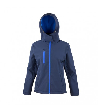 93% poliestere, 7% elastane, giacca softshell anti-vento, traspirante e impermeabile, tessuto interno in caldo micropile, cappuccio regolabile e rimovibile, zip frontale intera e 1 tasca lato cuore con zip, sprone sul retro decorativo, etichetta neutra, t