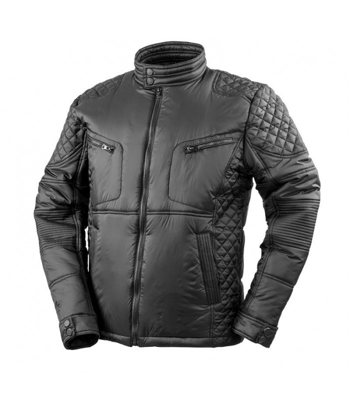 100% nylon 20d. giacca con colletto e polsini con chiusura a bottone, tasche sul petto con zip, nessuna etichetta, design trapuntato, stile biker, leggero e caldo.