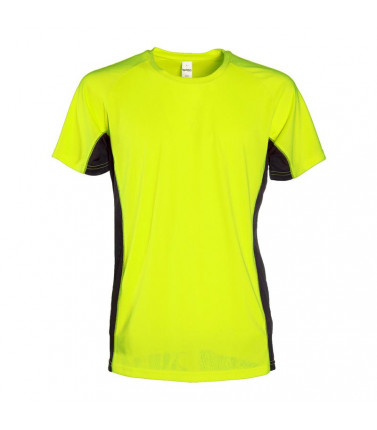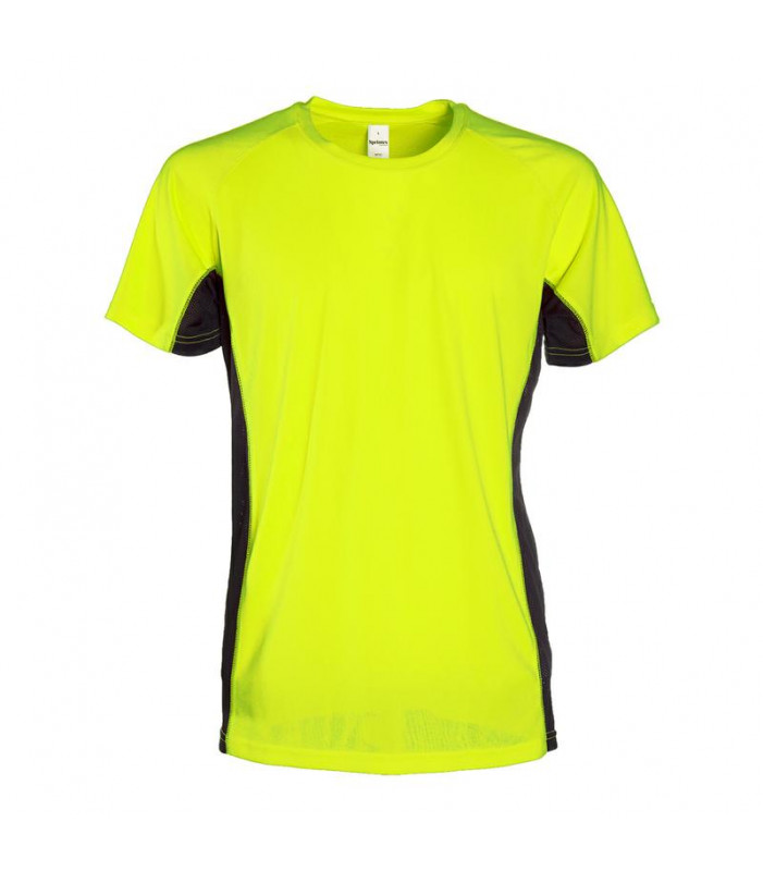 100% poliestere. t-shirt maniche corte raglan, struttura con fasce laterali in tessuto microforato di colore contrastante, nastro parasudore al collo.