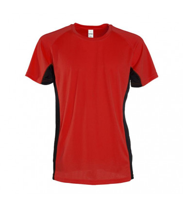 100% poliestere. t-shirt maniche corte raglan, struttura con fasce laterali in tessuto microforato di colore contrastante, nastro parasudore al collo.