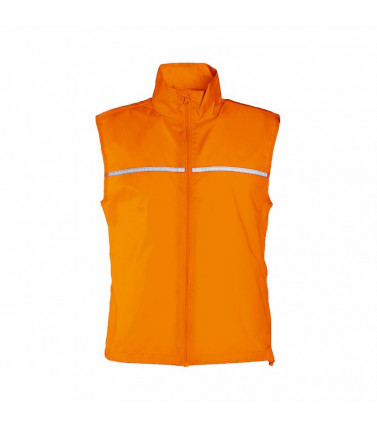 100% poliestere. giacca smanicata antivento, unisex, rete nella schiena. inserti catarifrangenti sia davanti che dietro. zip intera tono su tono, taschina interna lato sinistro, cordoncino in vita con stopper.