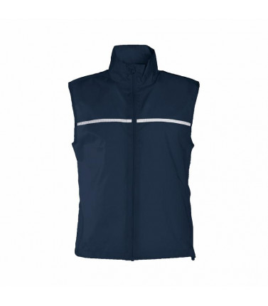 100% poliestere. giacca smanicata antivento, unisex, rete nella schiena. inserti catarifrangenti sia davanti che dietro. zip intera tono su tono, taschina interna lato sinistro, cordoncino in vita con stopper.