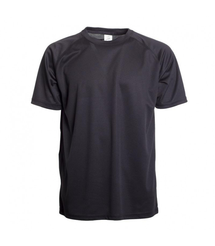 100% poliestere microforato. t-shirt maniche corte raglan, tessuto traspirante, struttura con cuciture laterali. etichetta removibile.