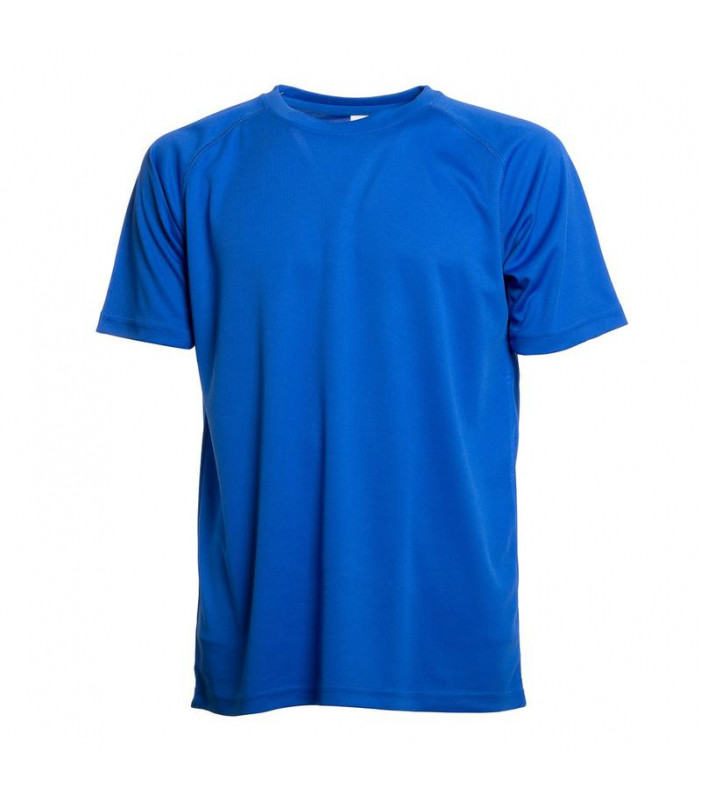 100% poliestere microforato. t-shirt maniche corte raglan, tessuto traspirante, struttura con cuciture laterali. etichetta removibile.
