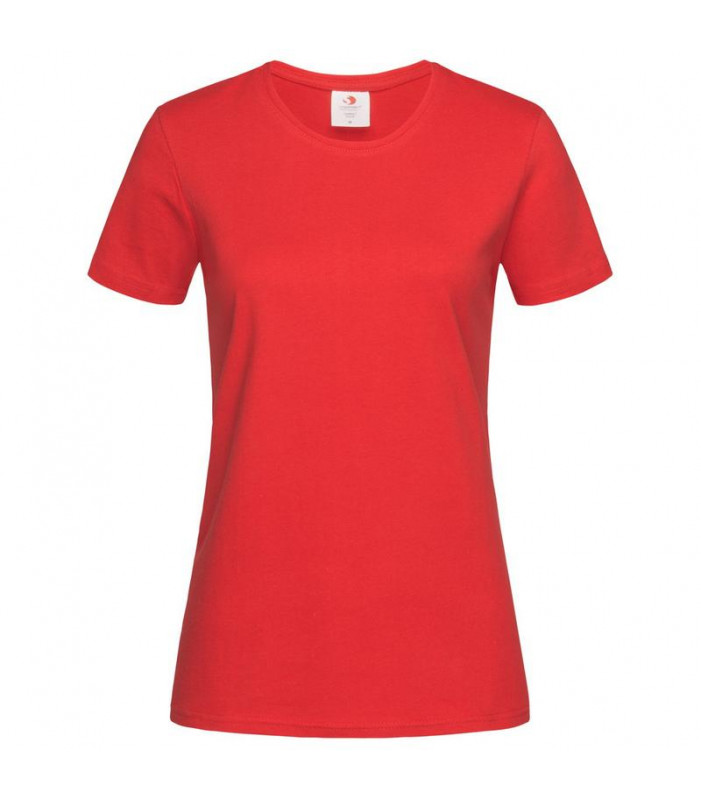 t-shirt con girocollo da donna, 100% cotone filato ad anelli, jersey semplice (gyh: 85% cotone / 15% viscosa). nastro di rinforzo, cuciture laterali, lavabile a 40°c. 185 g/m².