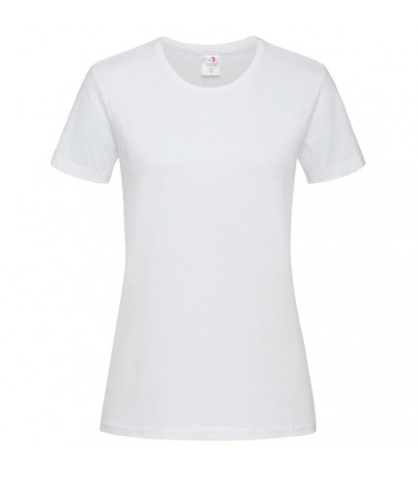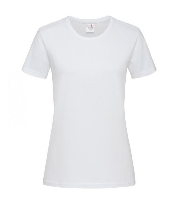 t-shirt con girocollo da donna, 100% cotone filato ad anelli, jersey semplice (gyh: 85% cotone / 15% viscosa). nastro di rinforzo, cuciture laterali, lavabile a 40°c. 185 g/m².