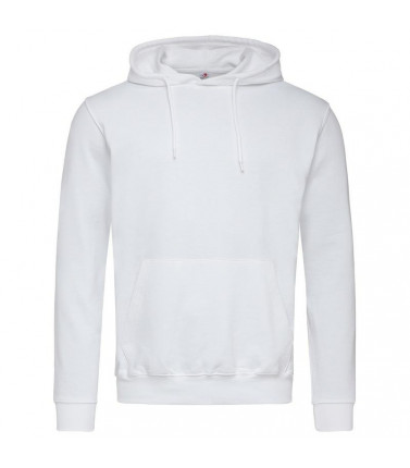 80% cotone filato ad anelli, 20% poliestere, felpata internamente, cappuccio ad un solo strato, cordini tono su tono, tasca a marsupio, polsini e bordo elastici.