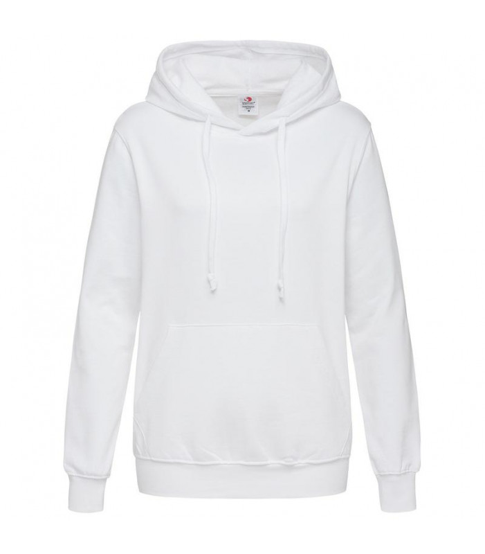 80% cotone filato ad anelli, 20% poliestere, felpata internamente, cappuccio ad un solo strato con cordino tono su tono.