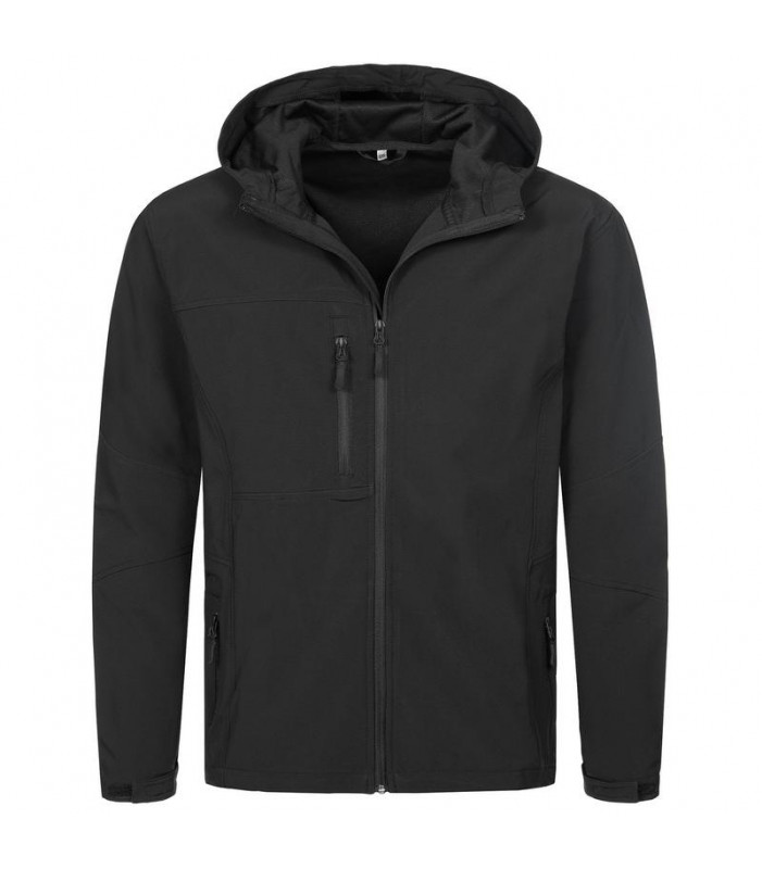 94% poliestere, 6% elastan. giacca in softshell, membrana tpu traspirante, idrorepellente (colonna d'acqua 2000 mm) e antivento. cerniere in contrasto. guarnizioni metalliche di ventilazione sotto le maniche (senza-nichel), cappuccio e maniche regolabili, tasche laterali e taschino al petto con cerniera, struttura con cuciture laterali.