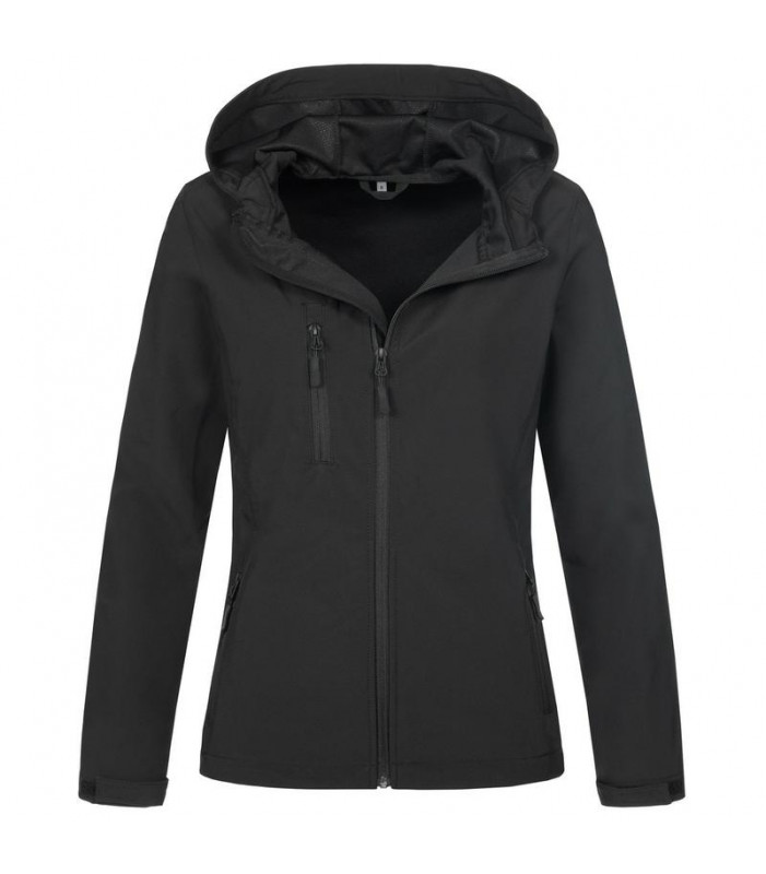 94% poliestere, 6% elastan. giacca in softshell, membrana tpu, traspirante, idrorepellente (colonna d'acqua 2000 mm) e antivento. cerniere in contrasto. guarnizioni metalliche di ventilazione sotto le maniche (nickel-free), cappuccio e maniche regolabili, tasche laterali e taschino al petto con cerniera, struttura con cuciture laterali.