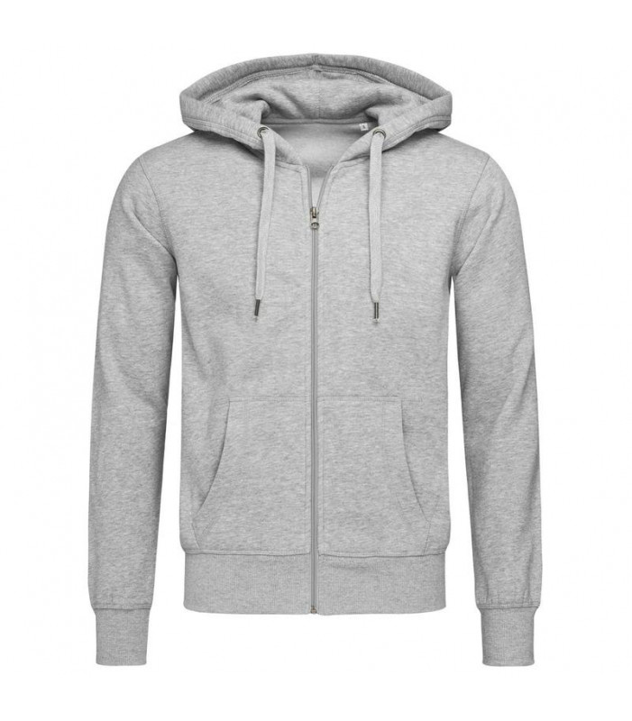 giacca in felpa 80% cotone filato ad anelli, 20% poliestere. internamente felpata, due tasche a marsupio. polsini e orlo inferiore in costina e cuciture laterali. cappuccio doppiato con cordoncino piatto in tinta, occhielli e particolari a fine cordone co