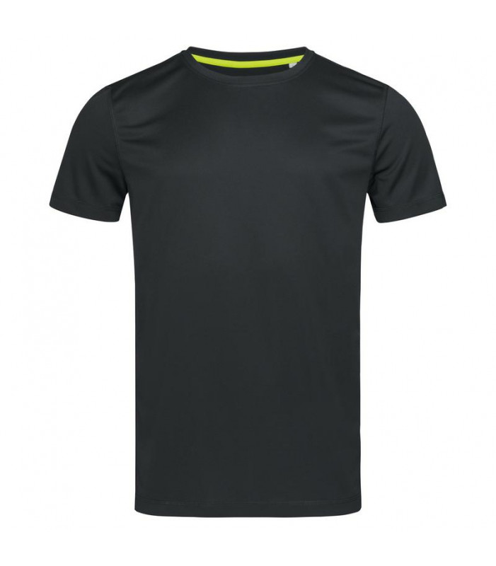 100% active-dry° poliestere. tessuto estendibile, pannelli laterali e maniche a giro. nessuna etichetta o stampa nel collo, solamente una piccola etichetta con lindicazione della taglia. letichetta del marchio è separata da quella della composizione e q