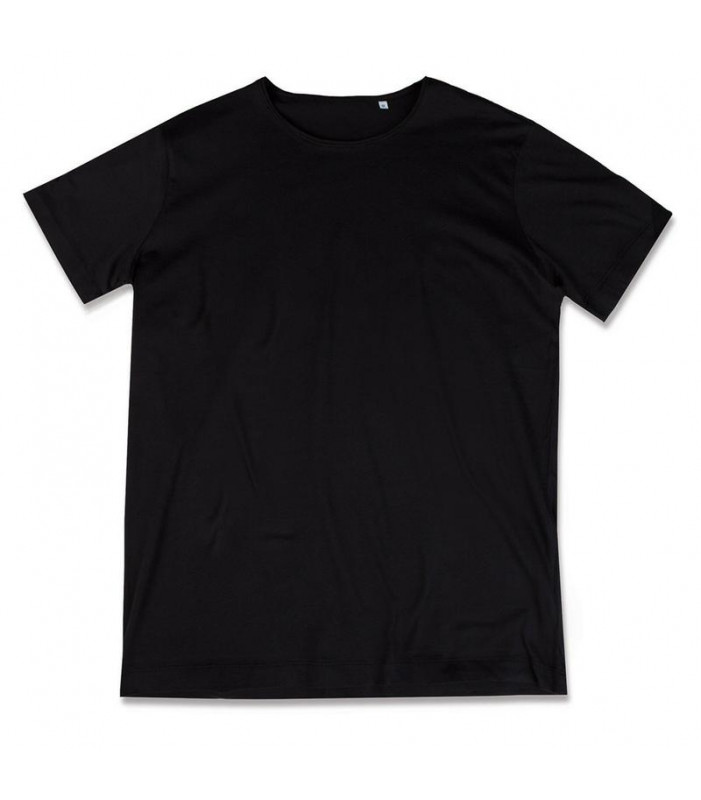100% cotone filato ad anelli pettinato. t-shirt da uomo, nastro di rinforzo, cuciture doppie in vita e sul bordo delle maniche, collo rollino nello stesso tessuto della t-shirt, piccola etichetta della taglia sul collo, etichetta di manutenzione nella cuc