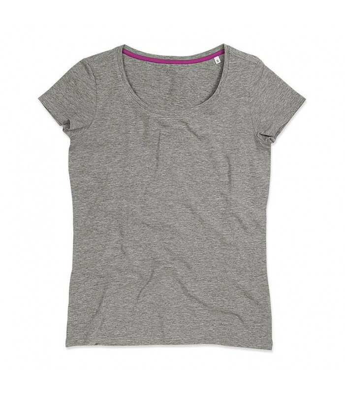 t-shirt girocollo manica corta, 100% cotone pettinato filato ad anelli. girocollo con fettuccia interna in colore a contrasto. ampio scollo, maniche più corte e vestibilità aderente che la rendono molto femminile. nessuna etichetta o stampa nel collo, sol