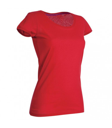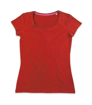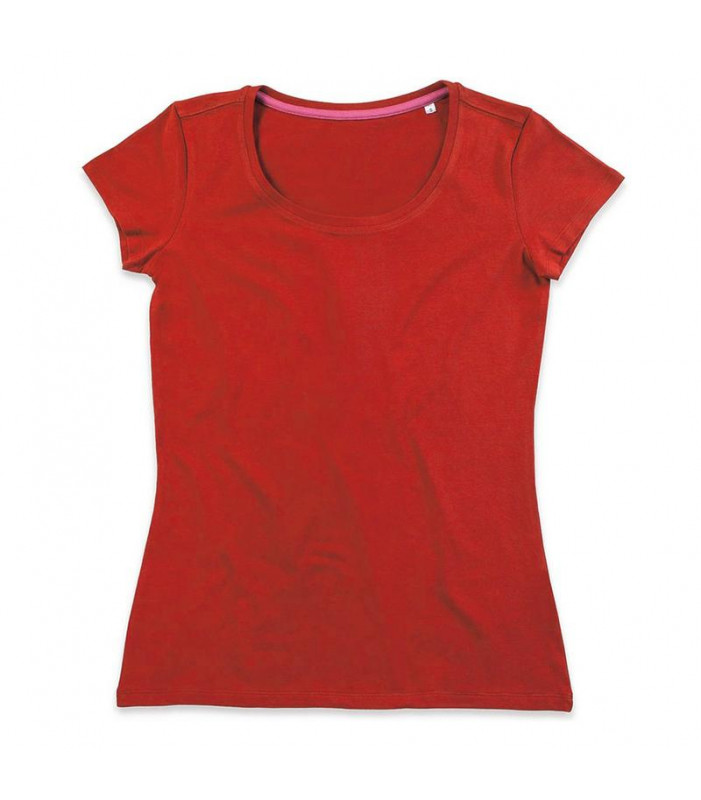 t-shirt girocollo manica corta, 100% cotone pettinato filato ad anelli. girocollo con fettuccia interna in colore a contrasto. ampio scollo, maniche più corte e vestibilità aderente che la rendono molto femminile. nessuna etichetta o stampa nel collo, sol