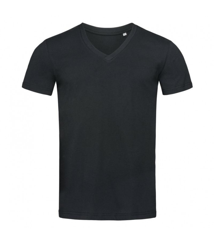 t-shirt maniche corte scollo a v 100% cotone filato ad anelli pettinato organico certificato ocs. cuciture laterali, nastro di rinforzo da spalla a spalla. scollatura a v sovrapposta, con bordo a costine orlato con elastan. nessuna etichetta o stampa nel