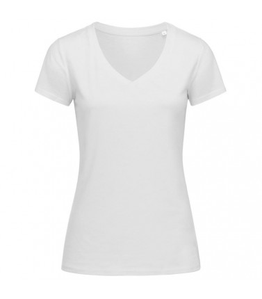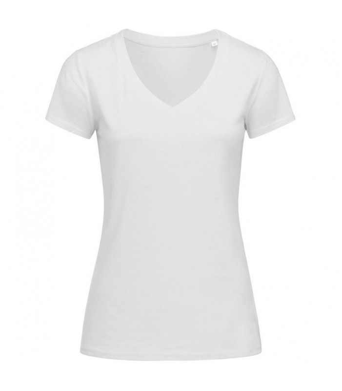 t-shirt scollo a v maniche corte, 100% cotone filato ad anelli pettinato organico certificato ocs. cuciture laterali, nastro di rinforzo da spalla a spalla. scollatura a v sovrapposta ampia e moderna, con bordo a costine orlato con elastan. nessuna etiche