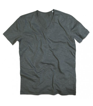 t-shirt maniche corte scollo a v, 100% cotone ring-spun con filato slub. cuciture laterali, cucitura a doppio ago sul collo, maniche e vita. nessuna etichetta o stampa nel collo, solamente una piccola etichetta con lindicazione della taglia. letichetta