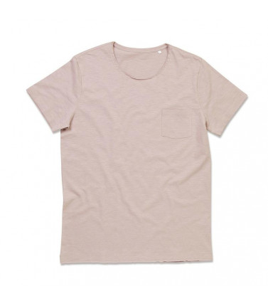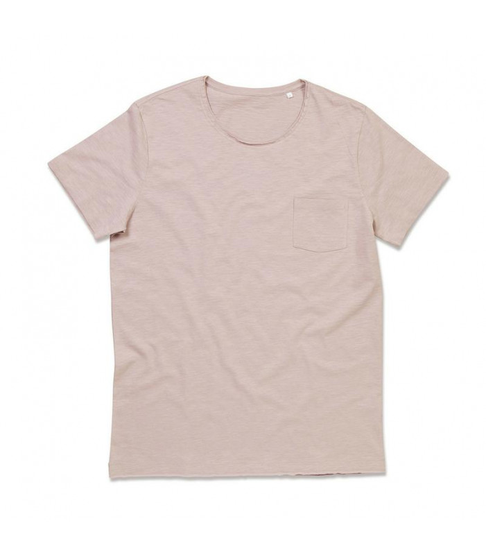 t-shirt girocollo manica corta, 100% cotone ring- spun con filato slub.girocollo ampio e orlo taglio vivo a costine piccole stile casual, cuciture a catena decorative, taschino laterale, cuciture laterali. 140 gr/m2. l'etichetta del marchio è separata da