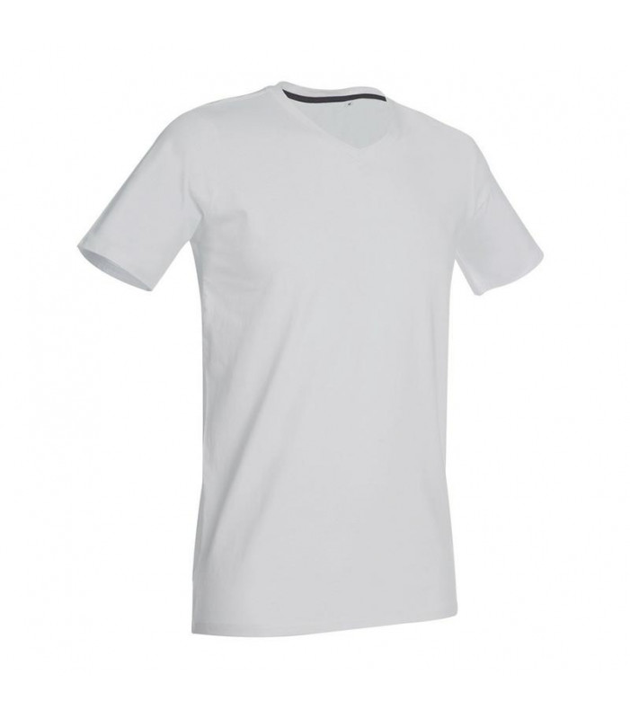 t-shirt manica corta, 95% cotone filato ad anelli, 5% elastane. cuciture laterali, vestibilità e maniche più aderenti. collo a v. nessuna etichetta o stampa nel collo, solamente una piccola etichetta con lindicazione della taglia. letichetta del marchio