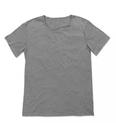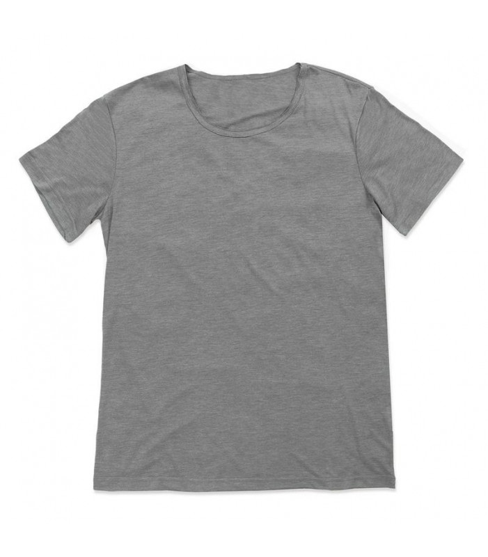 t-shirt manica corta 65% poliestere, 35% viscosa, melange, ultra soft, ampio girocollo con orlo taglio vivo, cuciture laterali. l'etichetta del marchio è separata da quella della composizione e quindi facilmente removibile. 150 gr/m2.
