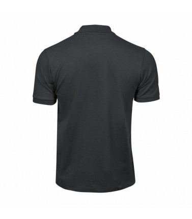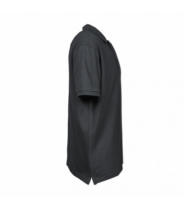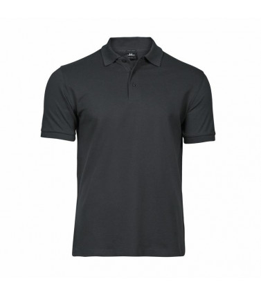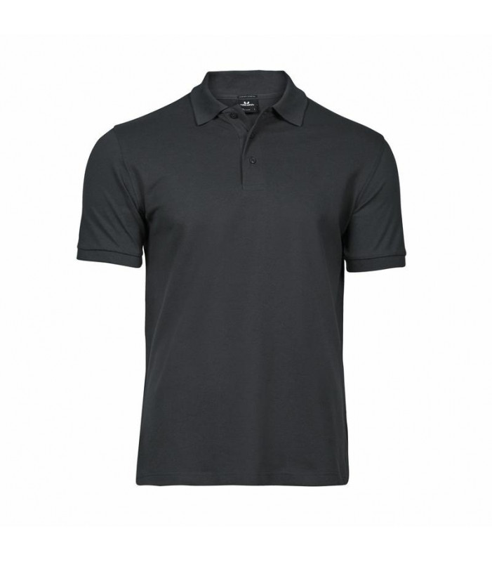polo luxury stretch uomo, 215 g/m², 95% cotone ring-spun, 5% elastan, tessuto mini pique, doppio prelavaggio, colletto a costine lycra, fettuccia al collo, abbottonatura con rifinitura accurata, taglio attillato