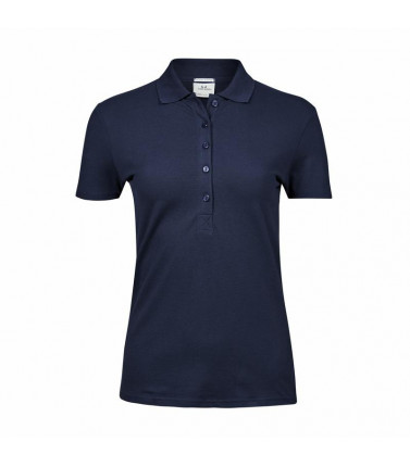 polo luxury stretch donna, 215 g/m², 95% cotone ring-spun, 5% elastan, tessuto mini pique, pre-ristretto, fettuccia al collo, colletto a costine lycra, abbottonatura con rifinitura accurata, taglio modellato