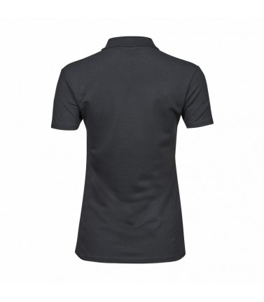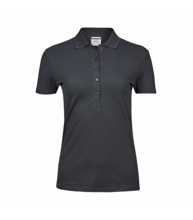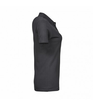 polo luxury stretch donna, 215 g/m², 95% cotone ring-spun, 5% elastan, tessuto mini pique, pre-ristretto, fettuccia al collo, colletto a costine lycra, abbottonatura con rifinitura accurata, taglio modellato