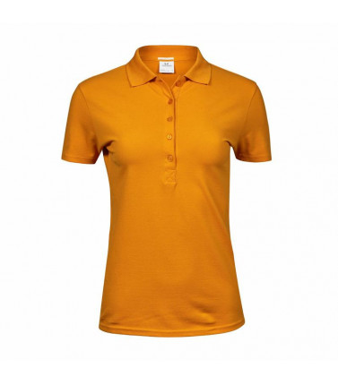 polo luxury stretch donna, 215 g/m², 95% cotone ring-spun, 5% elastan, tessuto mini pique, pre-ristretto, fettuccia al collo, colletto a costine lycra, abbottonatura con rifinitura accurata, taglio modellato