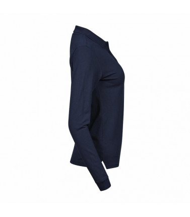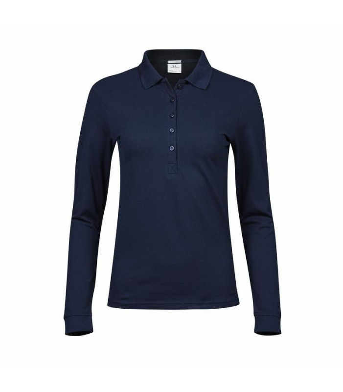 95% cotone pettinato ringspun, 5% elastane. polo mini piquet, maniche lunghe con polsino, bottoniera sottile, bottoni tono su tono, nastro di rinforzo alle spalle, collo in maglina con lycra, taglio femminile.