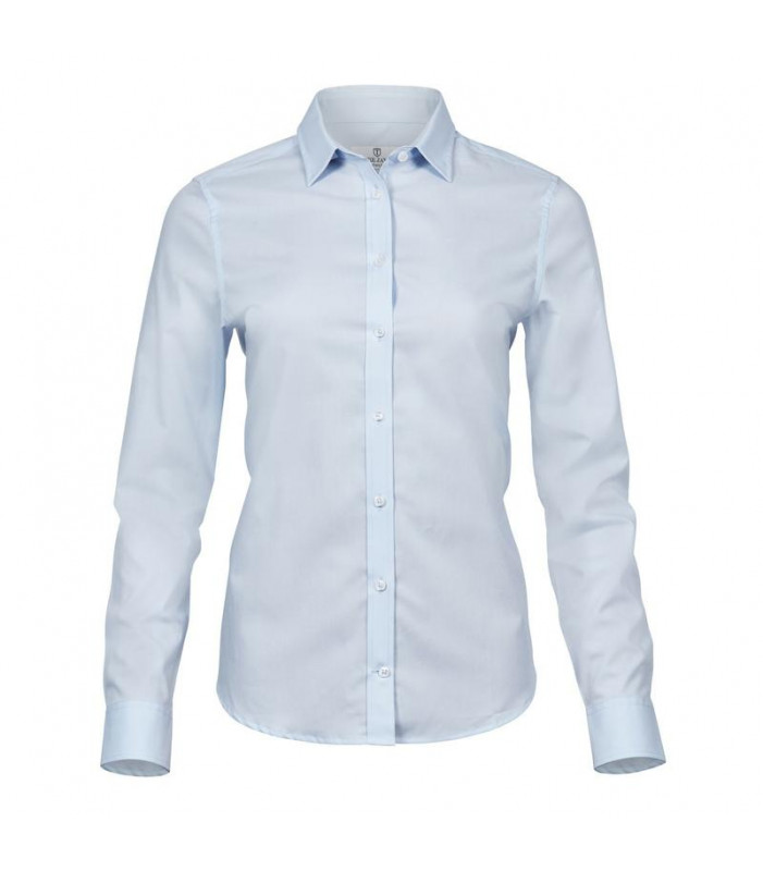 96% cotone, 4% lycra. camicia da donna dal taglio aderente e tessuto elaticizzato, corpo sagomato con eleganti bottoni in madreperla, carrã© posteriore con due pieghe laterali, pinces sul retro, finitura easy-iron.