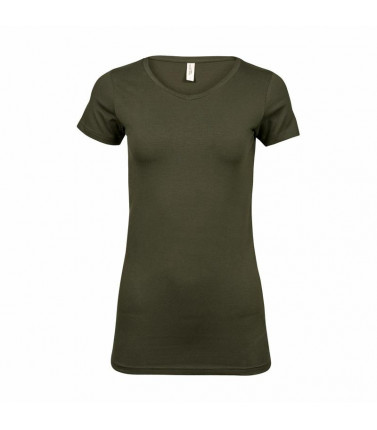 90% cotone pettinato ringspun, 10% elastane. t-shirt donna extra lunga, tessuto molto leggero, costina del collo sottile con lycra, trattamento agli enzimi che dona al tessuto un tocco morbido.