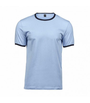 100% cotone. t-shirt uomo in single jersey, maniche e colletto con orlo contrastante. nastro di rinforzo alle spalle, struttura con cuciture laterali.