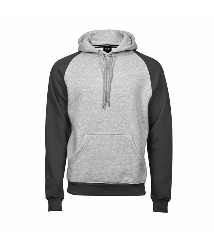 70% cotone, 30% poliestere. felpa bicolore con cappuccio, cotone egiziano a fibra lunga tessuto a 3 fili, costina di qualità con lycra, cordini grigi in tinta, 2 ampie tasche frontali, felpata internamente, cuciture doppie.