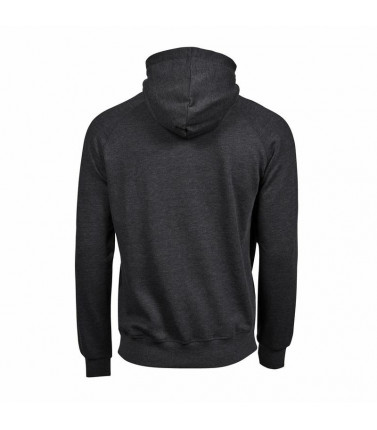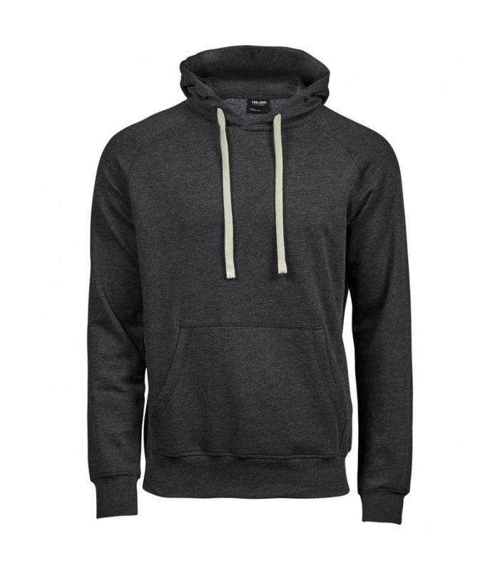 60% cotone, 40% poliestere. felpa con maniche raglan, cappuccio con cordoncino piatto di colore contrastante, felpata internamente, tasca a marsupio, struttura con cuciture laterali.