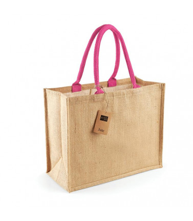 100% juta. dimensioni bxhxp: 33x42x19 cm, capacità 21 litri, area stampabile bxh: 24x34 cm massimo. manici di cotone robusto con colori a contrasto.